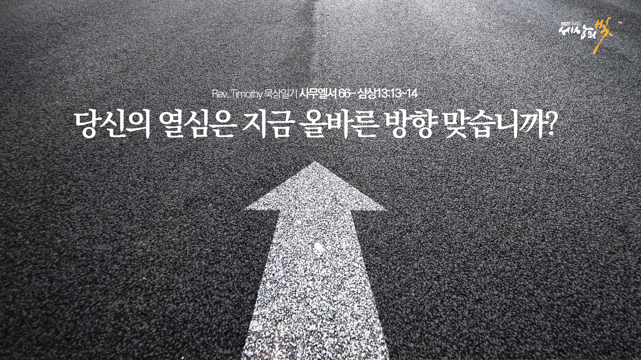 '열심'보다 '방향'입니다. '나름대로'보다 '하나님 말씀대로'입니다. 열심히 다 해놓고 어리석은 짓이었다는 소리를 듣지 않으려면 방향을 잘 잡아야 합니다. 잘못된 방향의 열심이라면 어떨까요? 열심히 기도하는 것보다, 주님의 마음을 아는 방향이 더 중요하죠.