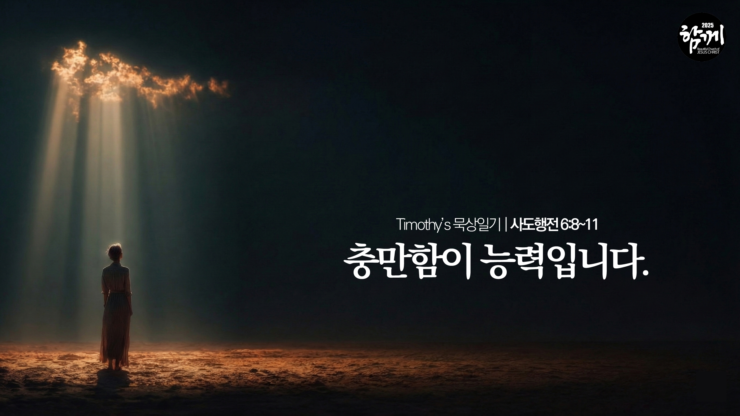 오늘 하루, 상황에 휘둘리지 말고 하나님의 은혜로 여러분의 내면을 가득 채우십시오. 그 충만함이 여러분의 평범한 일상을 기적의 현장으로 바꿀 것입니다.