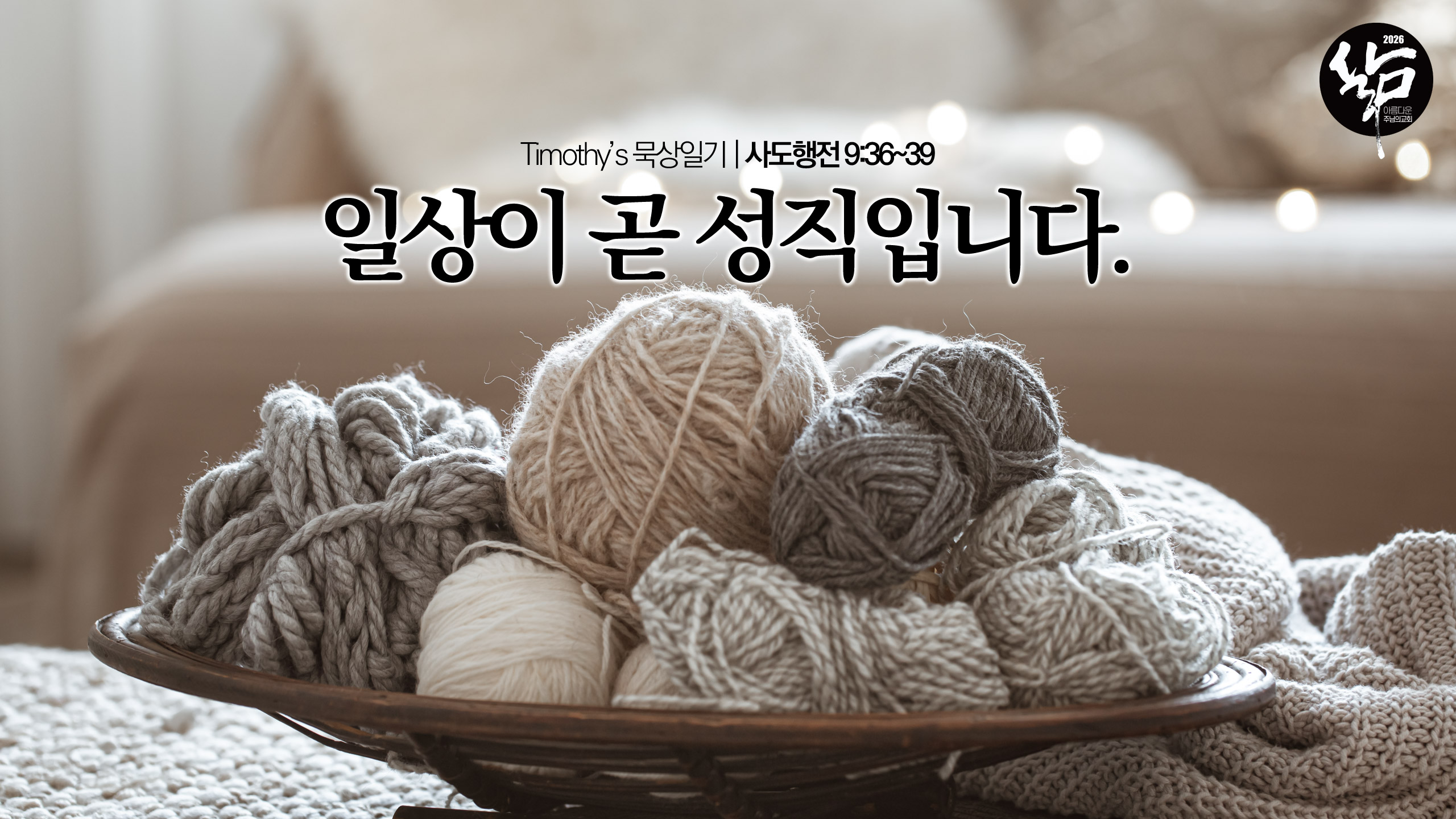 좋은 아침입니다. 화려한 주말도 아니고, 시작의 설렘이 있는 월요일도 아닌, 어쩌면 가장 평범하고 지루할 수 있는 화요일입니다. 하지만 작은 바늘땀 하나하나가 모여 멋진 옷이 되듯, 오늘 여러분이 반복하는 그 평범한 일상이 모여 위대한 하나님의 역사를 이룸을 기억하는 소중한 하루 되시기를 축복합니다.